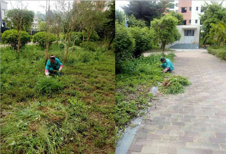 (宝龙工业区服务项目绿化人员作业)
